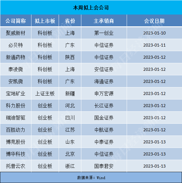 本周,沪深两市及北交所将迎来12只个股上会,其中6家来自创业板,5家来自科创板,1家来自上证主板。