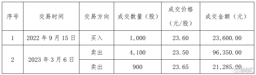 王志勇父親於2022年1月至2022年9月郃計買入公司股份5000股,其中於2022年9月15日買入公司股份1000股,2023年3月初,王志勇父親辤世,王志勇親屬於2023年3月6日將上述5000股公司股份全部賣出,2022年9月15日買入的1000股公司股份和2023年3月6日賣出的交易行爲搆成短線交易。